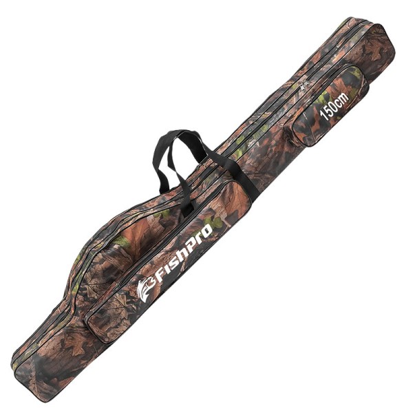 FishPro Camo е удобен двоен калъф, идеален за безопасен транспорт на въдици с макари, осигурявайки им защита от наранявания и повреди.