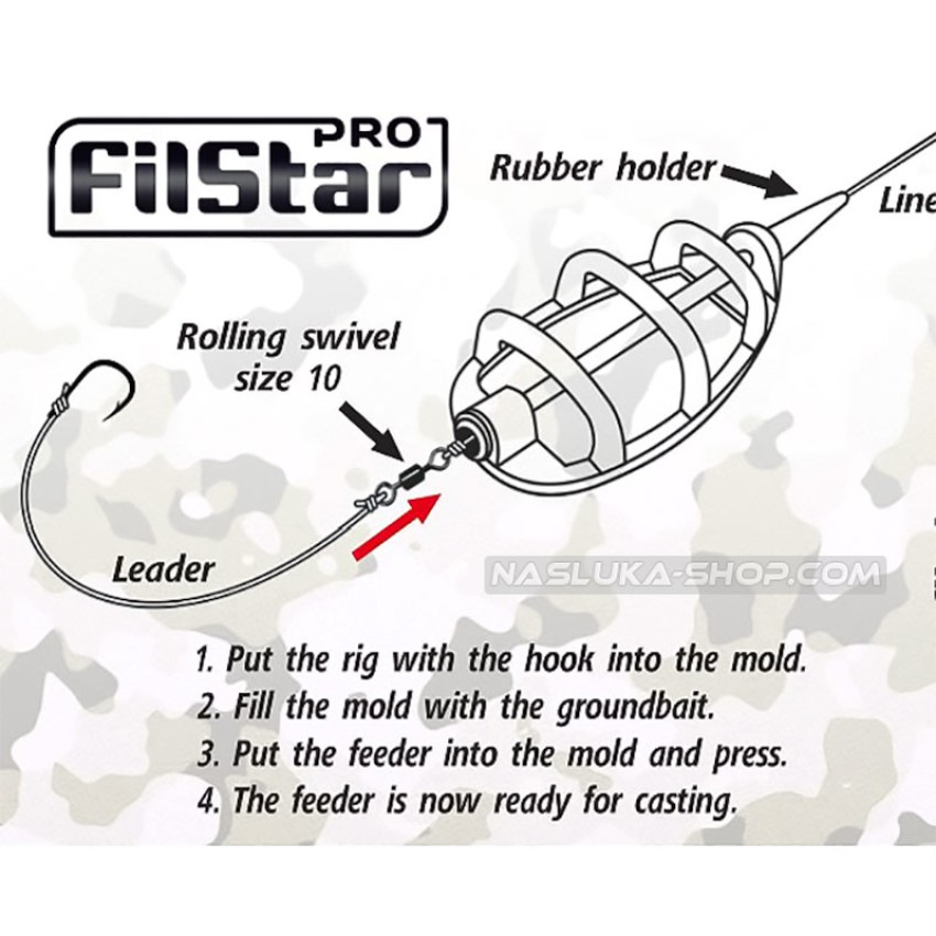 Предпочитан модел фидер хранилки, оборудвани с противоусукващ шлаух и вирбел. Подходяща за затворени водоеми.