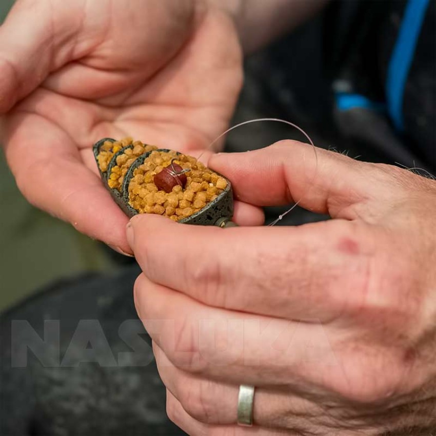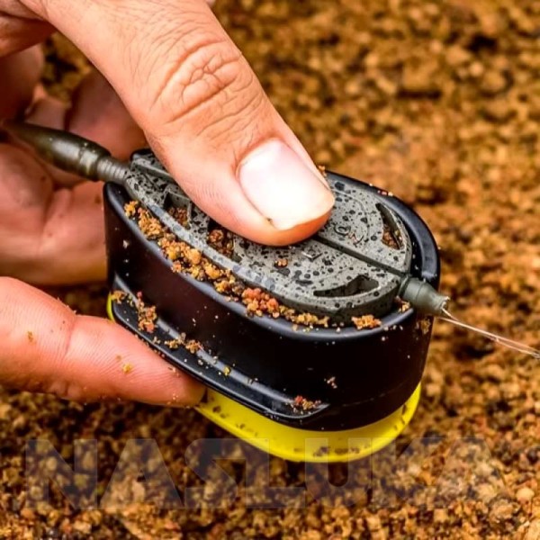 Конструкцията позволява бързо сваляне на хранилката от линията, включително и след приключване на риболова, с цел предпазване на въдицата.