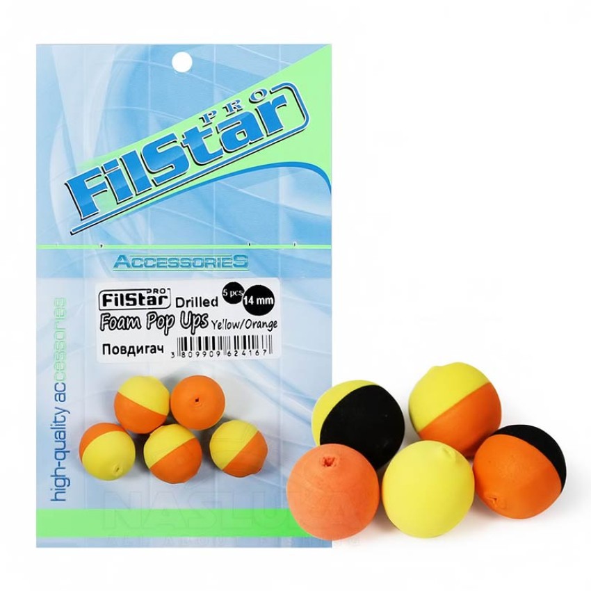 Filstar Foam Pop Ups Drilled, Yellow/Повдигащи разпробити топчета, 14 мм, 5 бр.