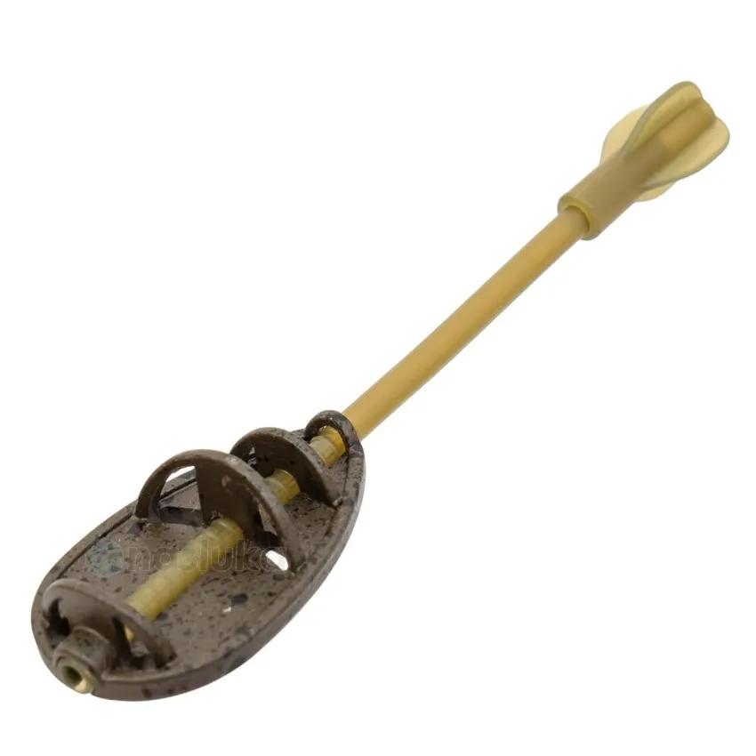 Моделът е с напречно оребряване с оставено свободно място в средата. Оребряването осигурява едновременно ефективно задържане на фидер микса и възможност за поместване на куката със стръвта в центъра.