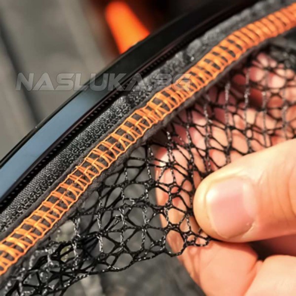Изработена от мека мрежа, монтирана в алуминиевата рамка, като по този начин се предпазва от нараняване по време на риболов.