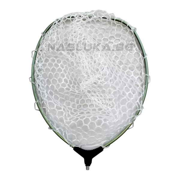 Силиконова мрежа, която е достатъчно здрава и същевременно не наранява рибите при изваждане. След риболов се почиства лесно и бързо като не задържа неприятна миризма.