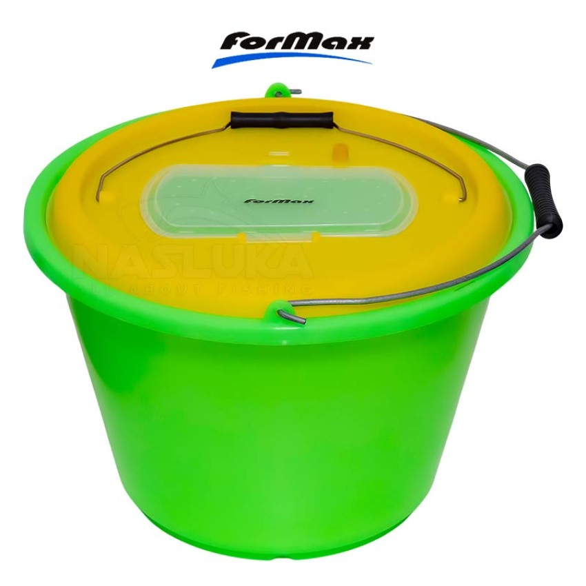 Formax FXPB-012003 е практична и удобна голяма кофа, проектирана за съхранение и транспорт на живи рибки. Изработена е от здрава и лесна за почистване пластмаса, устойчива на влага, температурни промени и механични натоварвания.
