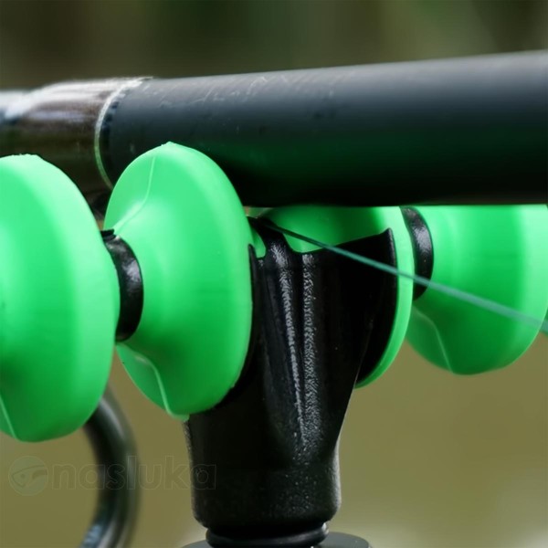 Повдигнатите ограничители държат въдицата на място, а 5-те отделни гнезда позволяват избор на най-удобната позиция според ситуацията.