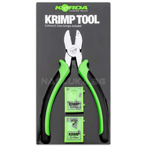 Korda Krimp Tool включва солидни клещи и кримпове с подходящи размери.