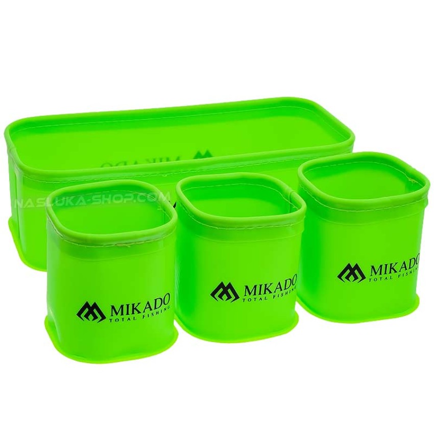 Окомплектована с общо четири EVA контейнера (един голям и три малки), подходящи за различни видове стръв, подготвяне на захранки, пелети и миксове.