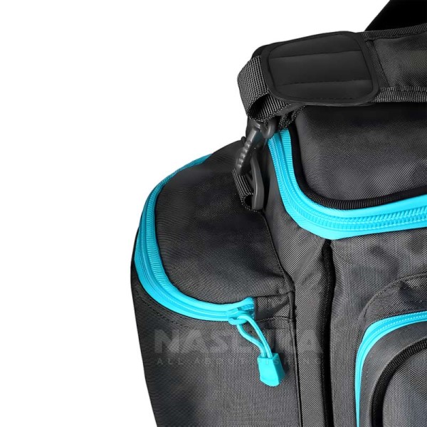 Mikado Cage Feeder Carryall M разполага с голям преден джоб с цип, както и с два странични джоба, също с ципове. Тези отделения предлагат достатъчно място за съхранение на кутии, аксесоари или дрехи.