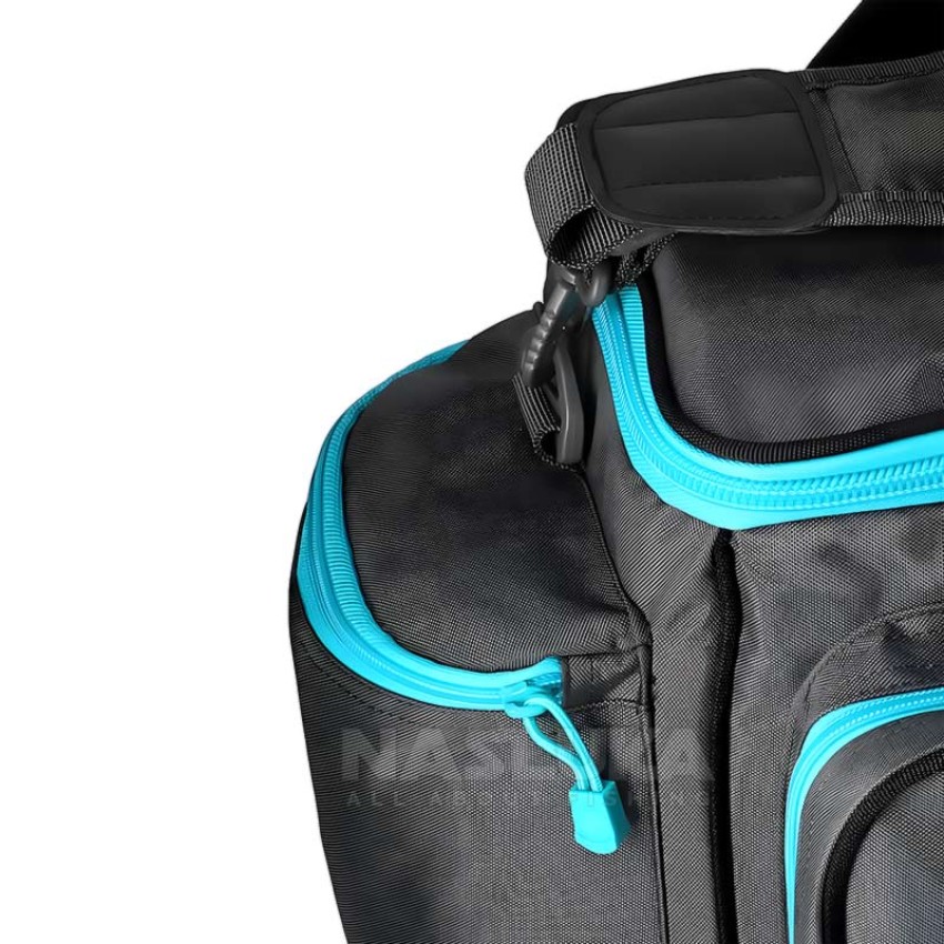 Не на последно място Mikado Cage Feeder Carryall M впечатлява с модерен дизайн в сив цвят със светлосини детайли, който ще добави стил към вашето риболовно оборудване.