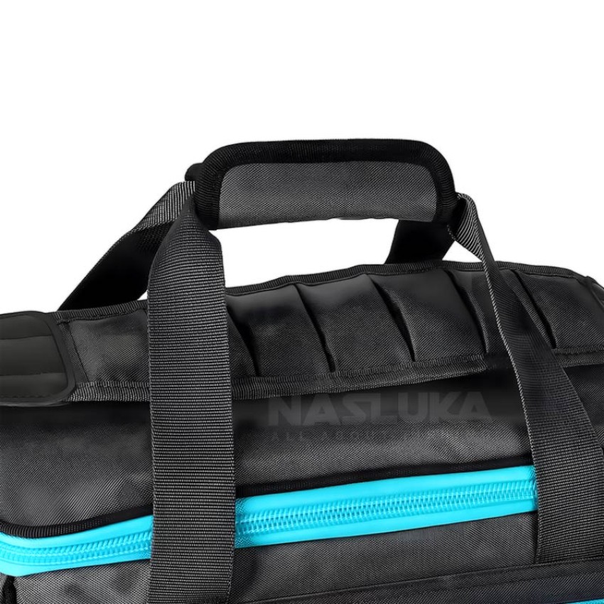 Произведен е от най-висок клас материали, осигуряващи изключителна здравина и дълготрайност. Изработен от 100% полиестер, той е устойчив на износване и лесен за поддръжка. Солидната подплата от всички страни, включително капака, който разполага с два мрежести джоба, осигурява надеждна защита на вашите принадлежности.