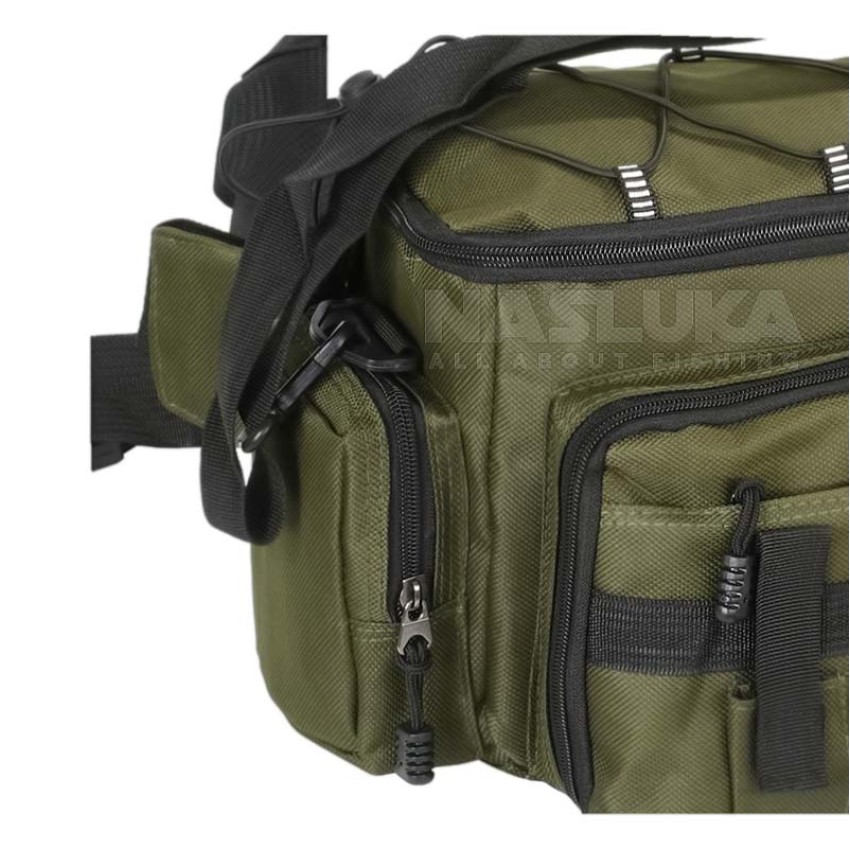 Здравите ципове с гумирани накрайници гарантират дълготрайност и лесно отваряне, дори в мокри условия. Компактният размер на сака го прави изключително удобен за транспортиране, като същевременно предлага достатъчно място за всичко необходимо по време на риболовния излет.