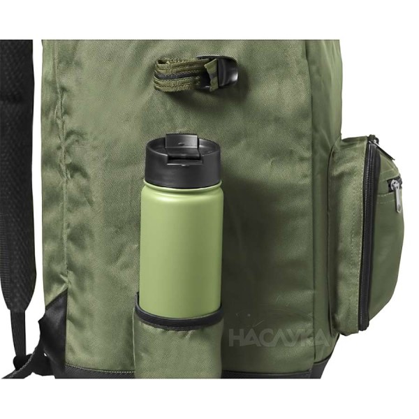 Двете страни на раницата са оборудвани с отворен джоб и над нея има две каишки. Например, те са подходящи за държане на по-дълги неща като колчета и някои видове въдици. Отвореният джоб може да се използва и за поставяне на термос или по-тънка бутилка с вода.
