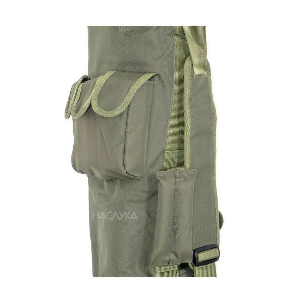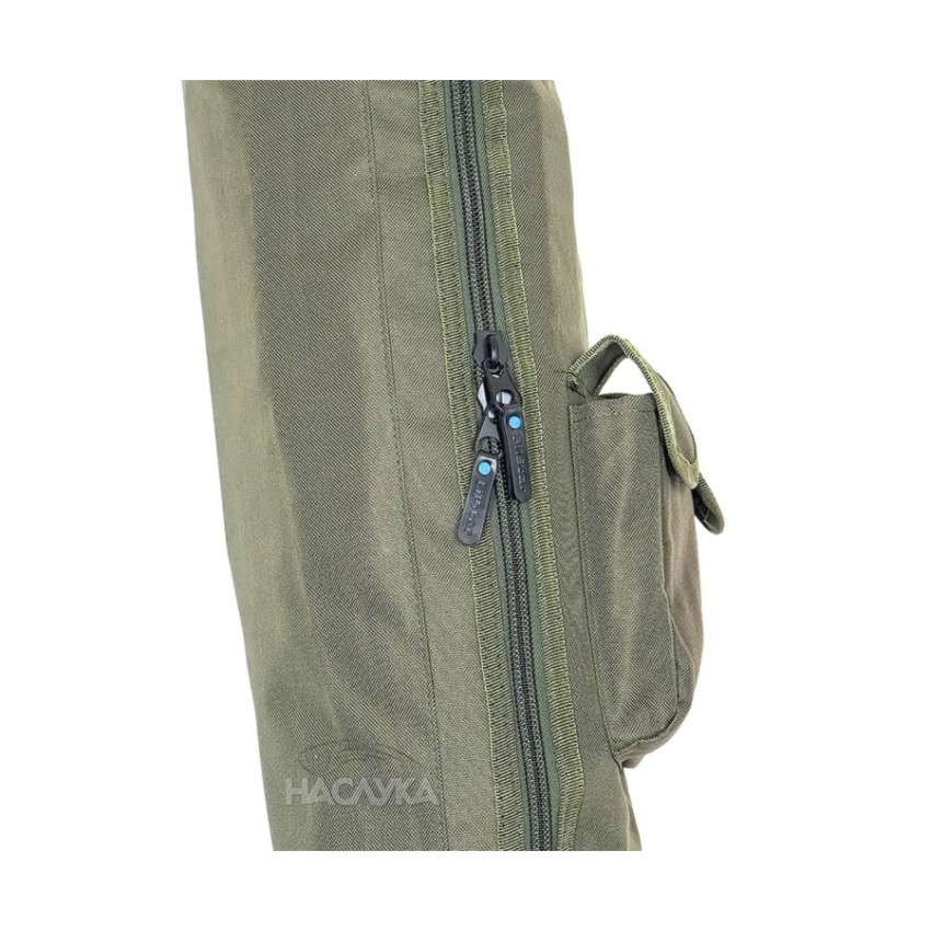 Изработен от непромокаем и здрав полиестер с двойно подсилени шевове и здрави ципове. Калъфът е с два странични джоба където могат да се поставят колчета или други аксесоари за шарански риболов.