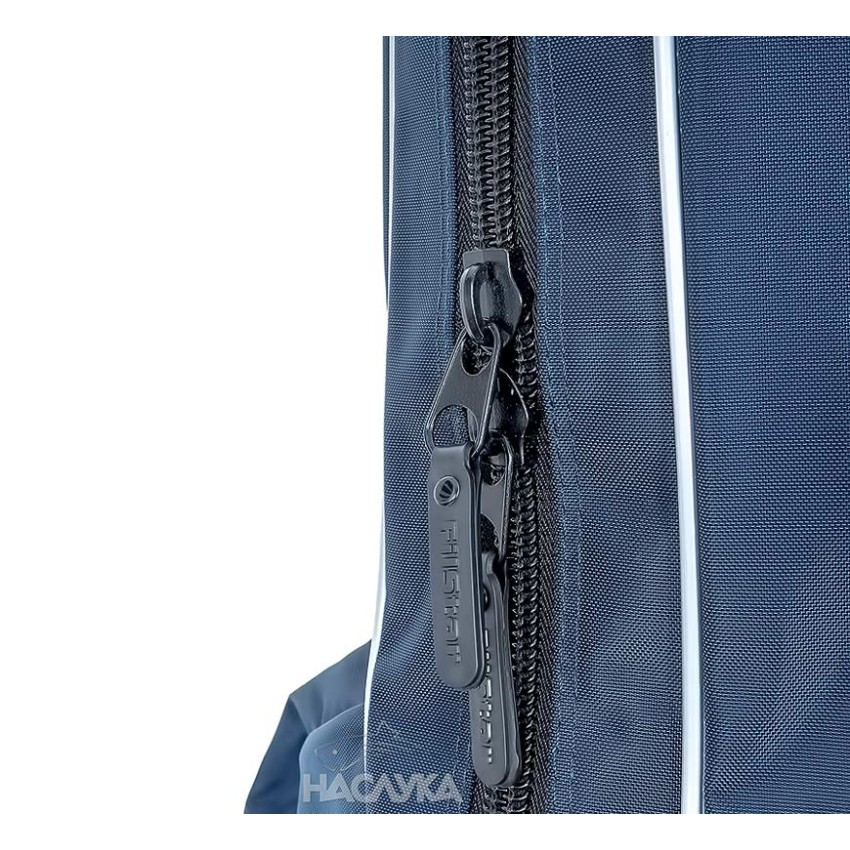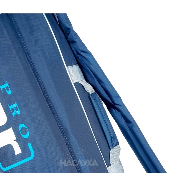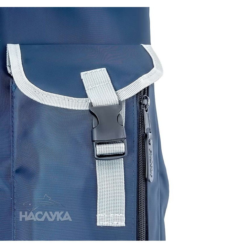 По цялата дължина на калъфа минава двоен цип. От външната страна е добавен джоб с капак с дължина 115 см и широчина 15 см, в който комфортно могат да се поставят допълнителни елементи от екипировката, като колчета, бъзбарове, кеп, чадър и др. Моделът е с общо 6 позиции за въдици, разделени по три от всяка страна, като между тях има мека подплата.