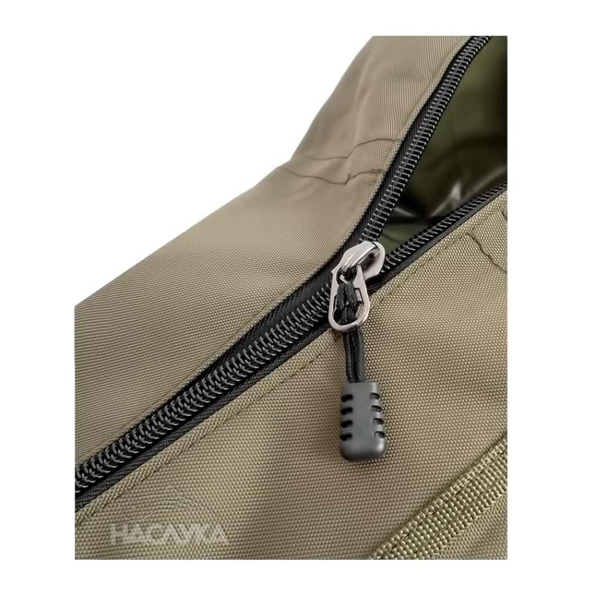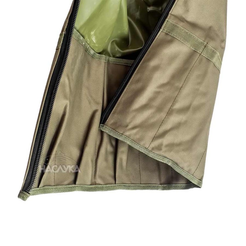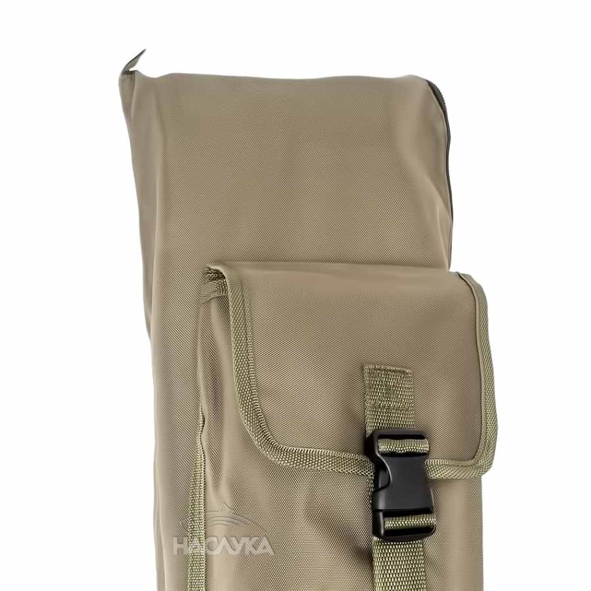 Отстрани, по дължина на калъфа, са добавени два допълнителни джоба. Джобовете са с капак със закопчалка и допълнителен цип по дължина за улеснено поставяне на колчета, чадър, кеп или друга част от риболовното оборудване.