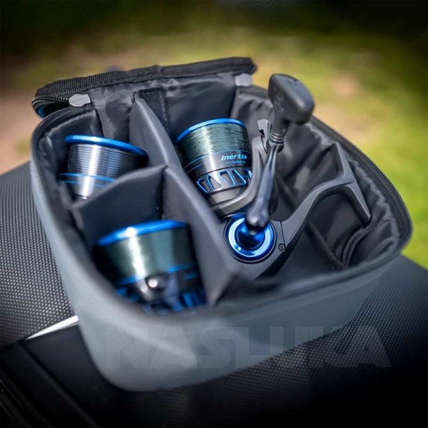 Competition Reel Case разполага с голямо вътрешно отделение за макарата и две допълнително обособени позиции за поставяне на резервните шпули.