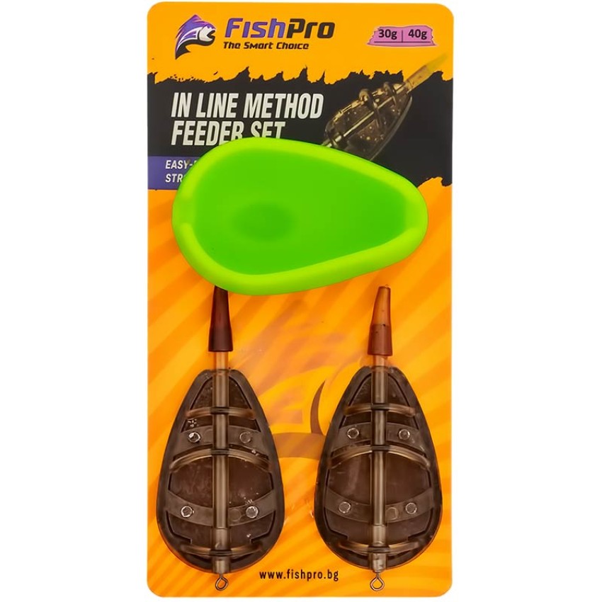 Комплект 2 бр. фидер хранилки с преса FishPro Inline Method 2+1, 30+40 г