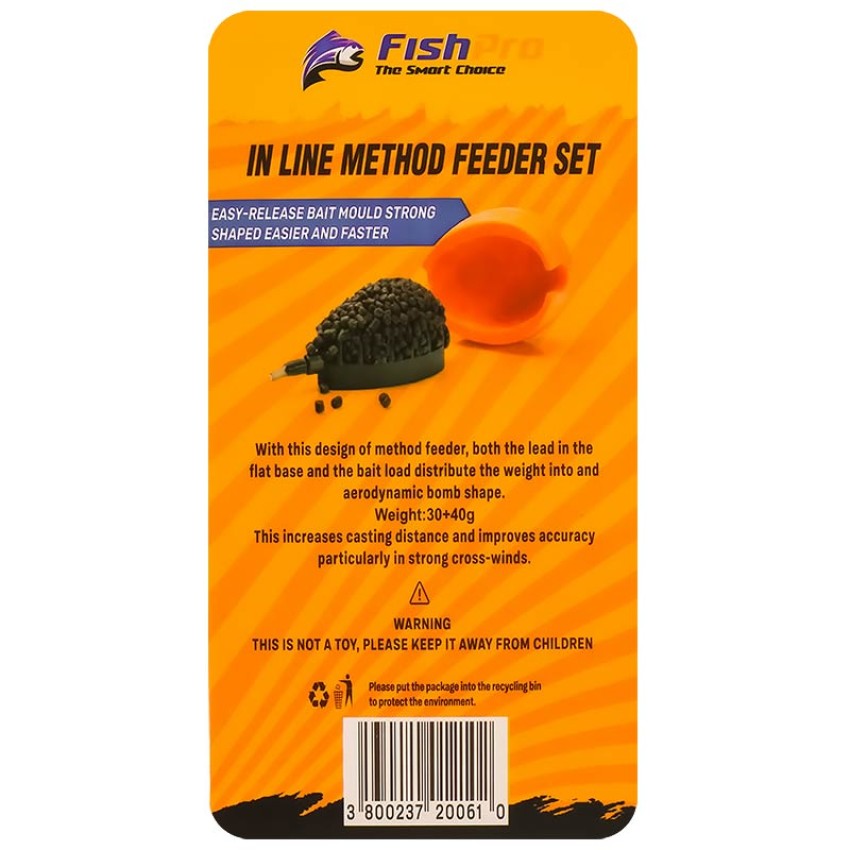 Задай въпрос относно Комплект 2 бр. фидер хранилки с преса FishPro Inline Method 2+1, 30+40 г