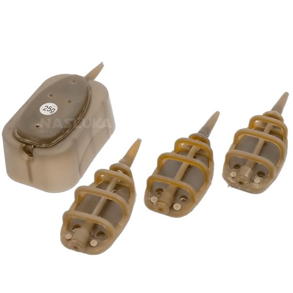Хранилките са с тегло 35, 40, 50 и 60 грама и за изработката им е използван здрав полимер. Комплектът е с тежки хранилки и е подходящ за използване в реки със силно течение или язовири с голяма дълбочина.