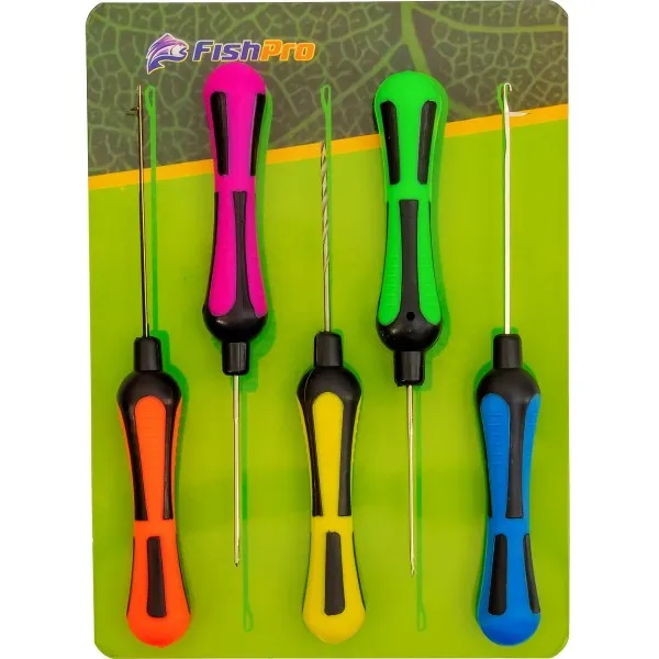 Комплект игли и свредло FishPro е задължителен инструмент за всеки, който практикува фидер и риболов на шаран. Включва четири вида игли и едно свредло, създадени специално за различни видове стръв: царевица, топчета, пелети и тигров фъстък. 🎣