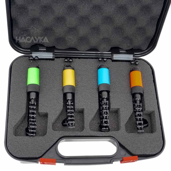 Комплектът е в твърд куфар с отделения за всеки хенгер за защита и удобство при транспортиране и представлява отлично допълнение към аксесоарите на всеки любител на шаранджийския риболов.
