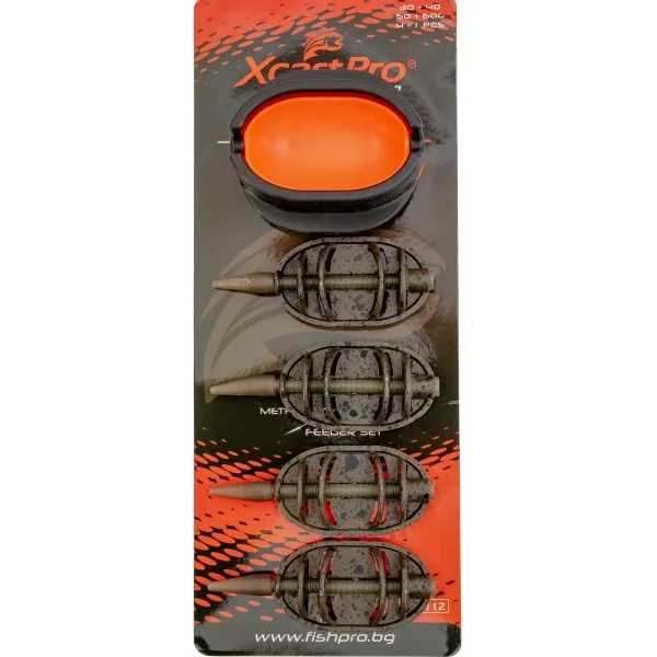 Комплект от 4 метод фидер хранилки с преса Xcast Pro 104112, 30+40+50+60 г