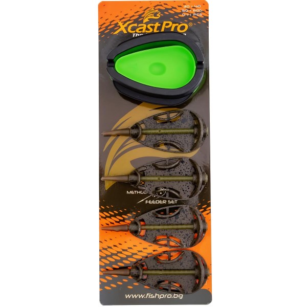 Комплект от 4 метод фидер хранилки с преса Xcast Pro 104115, 30+40+50+60 г