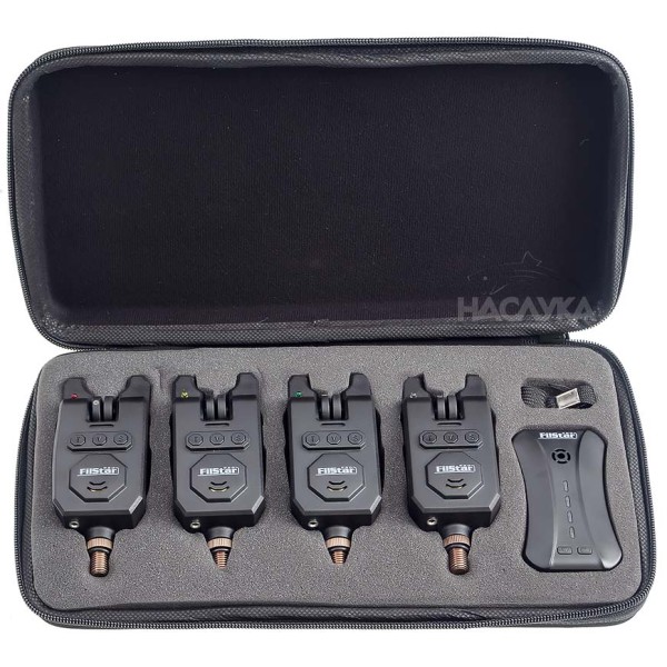 Kомплект от четири сигнализатора с централа от FilStar, отличаващи се с високо качество на изработка. Всеки сигнализатор свети в различен цвят - син, зелен, жълт и червен. Сигнализаторите притежават възможност за прецизно регулиране на силата на звука, чувствителността и тона. Към сигнализаторите могат да се включат различни модели светещи обтегачи или хенгери. Основно предимство на тези аларми е наличието на снаг бар ограничители, които се завиват на резба. Сигнализаторите са водоустойчиви и се захранват с по една батерия 9V, която не е включена в комплекта. Централата е много компактна и удобна за ползване. Захранва се с помощта на три батерии тип ААА 1,5 V. Обхватът й варира от 100 до 200 метра в зависимост от условията и терена. Работната честота е 433,92 MHz.