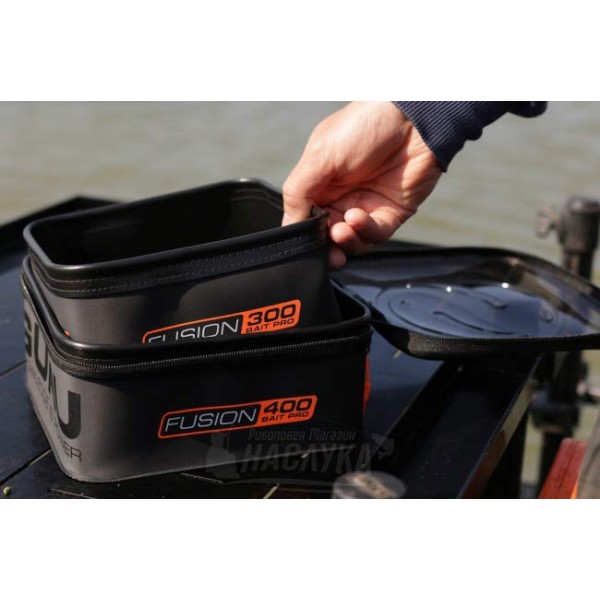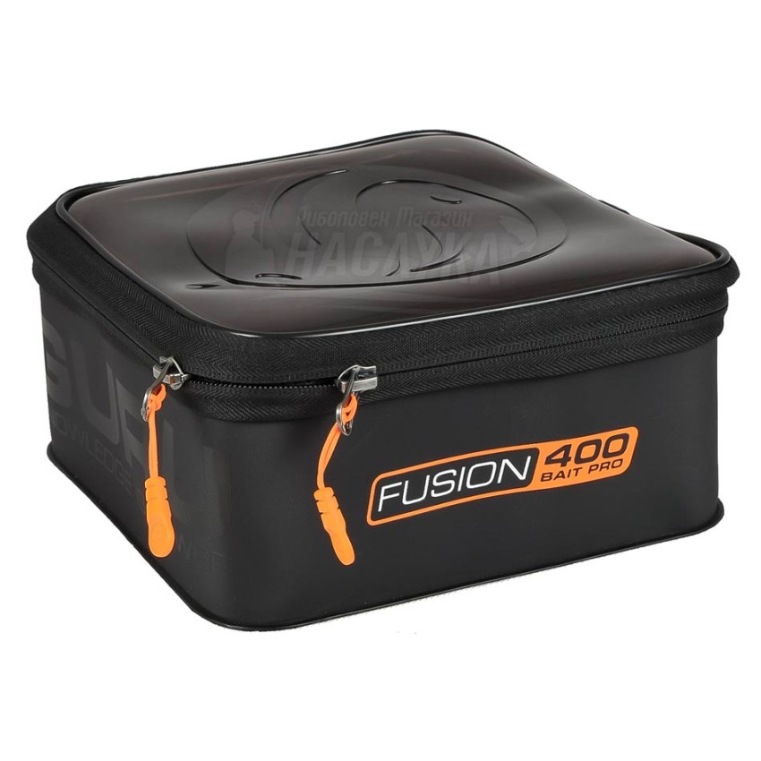 Кутията Fusion 400 е с тониран мек капак и надежден цип. Капакът едновременно предпазва стръвта от слънцето и позволява да се вижда съдържанието.