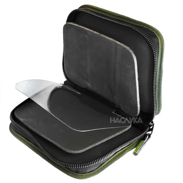 Моделът е снабден с общо четири EVA подложки за закачане на блесни. Поставените между тях здрави прозрачни разделители предпазват от оплитане и ожулване на блесните една в друга.