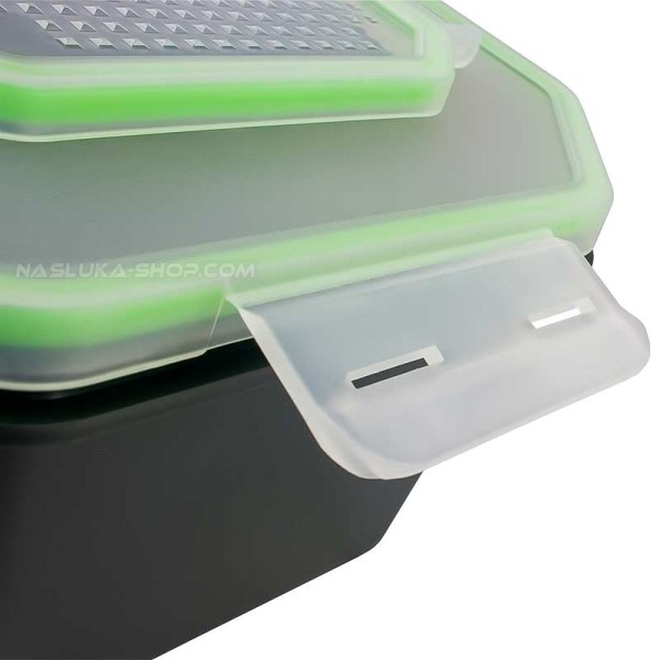 Цялостния дизайн на кутиите не позволяват изтичането на каквато и да е стръв, същевременно запазват стръвта суха и проветрива през цялото време.