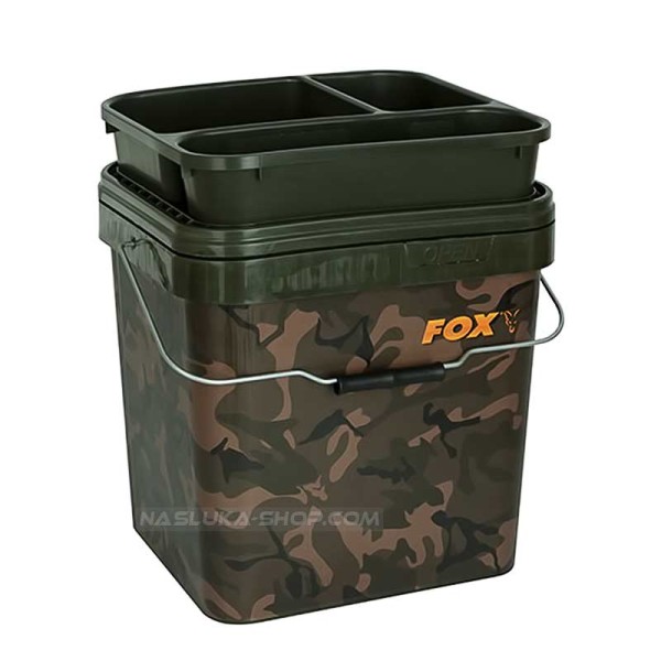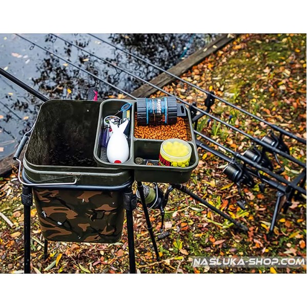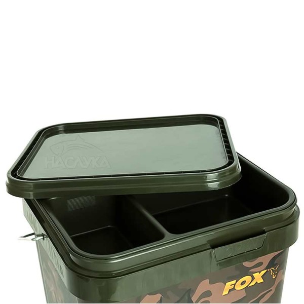Квадратен леген за кофа Fox Camo Square Bucket - много удобен, разделен на три отделения с различни размери и вместимост.
