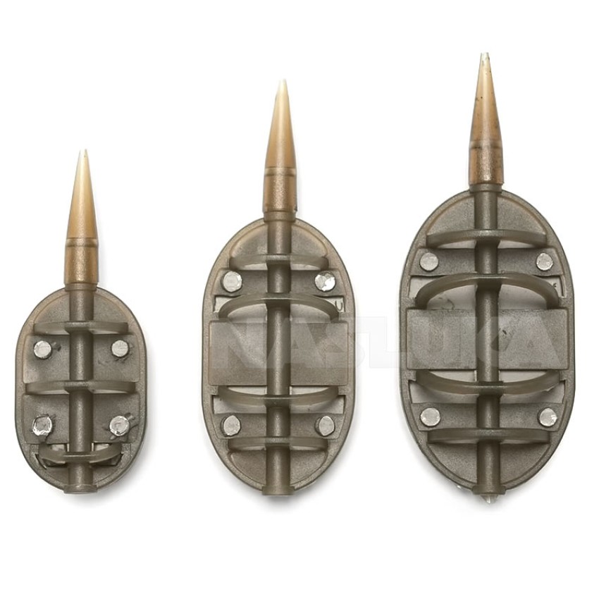 Моделът е със симетрична овална форма и класическо оребряване със свободно пространство в центъра. Това спомага за ефективно задържане на фидер микса до момента, в който монтажът падне на дъното.