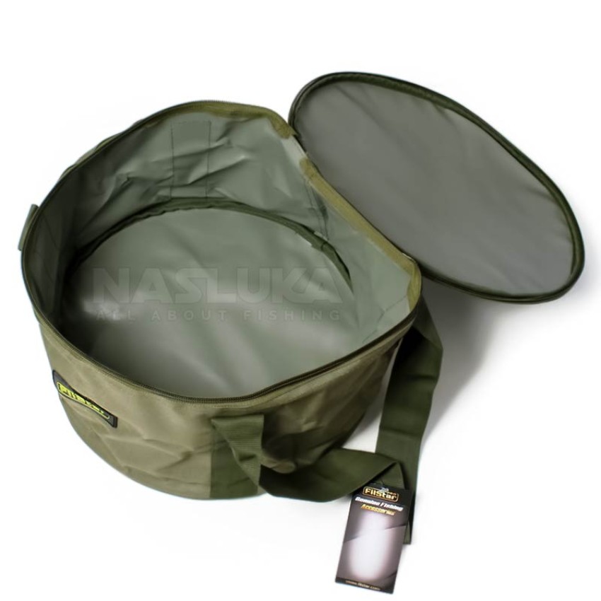 Сгъваем футер с дръжки и капак FilStar Fishing Feeder Container Round Cover – идеалният съд за приготвяне на сместа за захранка. Този текстилен сгъваем съд е изработен от здрав плат, който не пропуска вода, осигурявайки максимална издръжливост и удобство при риболов.