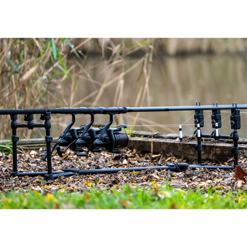 Оборудвана е с 4 регулируеми крака и бъзбарове с месингова резба за 3 сигнализатора. Идеална за шарански риболов в различни условия 🎣