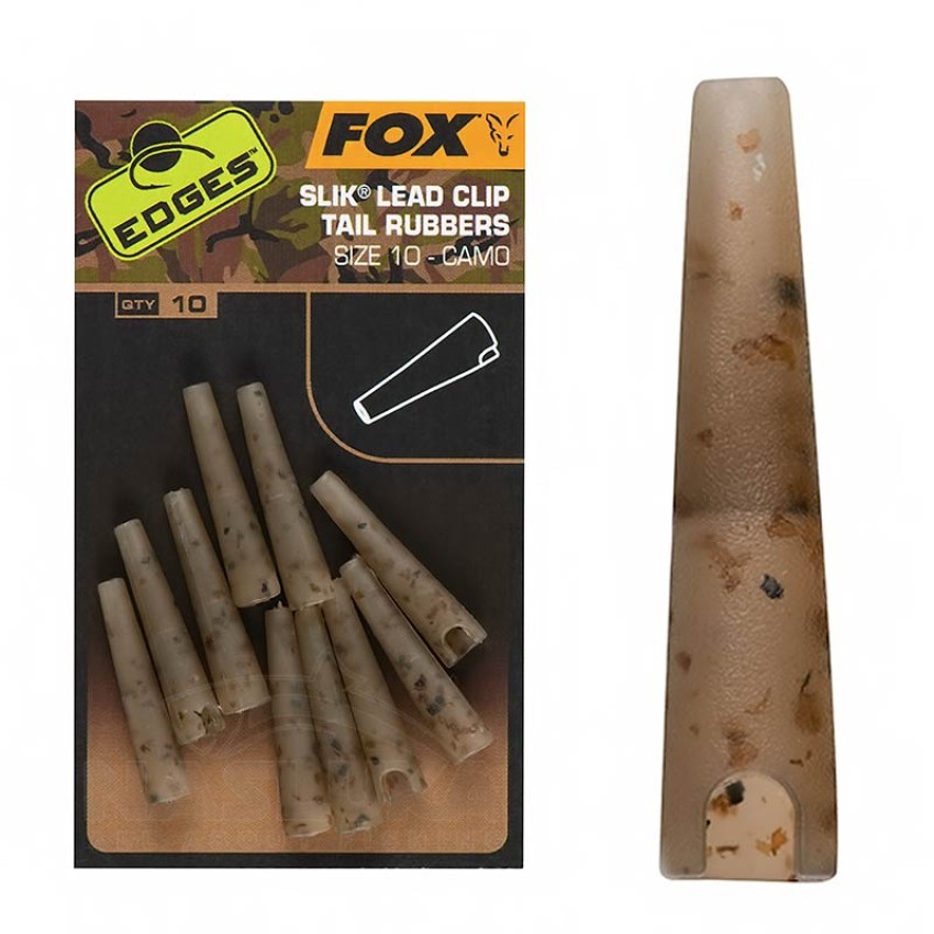 Прегледите над Шлаух за клипсове Fox Slik Lead Clip Tail Rubbers, Camo, 10 бр.