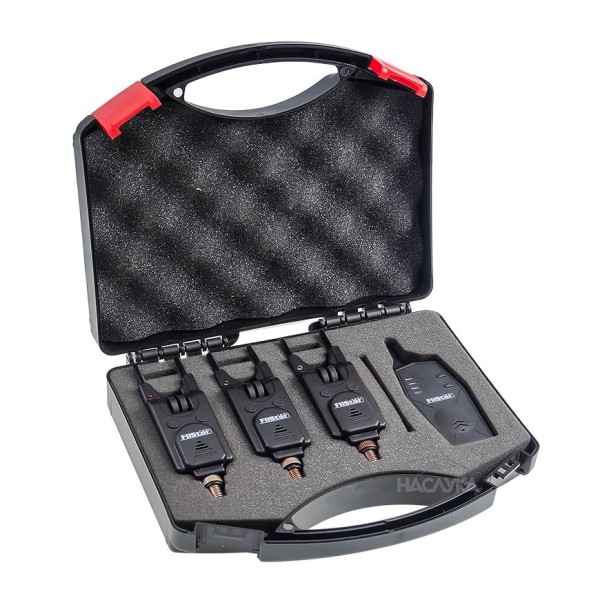 Висок клас комплект от три сигнализатора с централа от FilStar. Всеки сигнализатор свети в различен цвят - син, зелен и червен. Сигнализаторите притежават възможност за прецизно регулиране на силата на звука и тона. Към сигнализаторите могат да се включат различни модели светещи обтегачи или хенгери. Основно предимство на тези аларми е наличието на снаг бар ограничители, които се завиват на резба. Сигнализаторите са водоустойчиви и се захранват с по една батерия 12V 23A, която не е включена в комплекта. Централата е много компактна и удобна за ползване. Захранва се с помощта на три батерии тип ААА 1,5 V. Обхватът й варира от 100 до 200 метра в зависимост от условията и терена. Работната честота е 433,92 MHz.