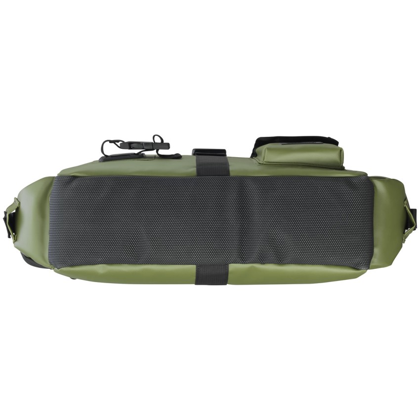 Чантата е изработена от PVC материал с водоотблъскващи ципове и прекриващ капак, които осигуряват отлична защита срещу влага, но не е напълно водонепромокаема при потапяне.