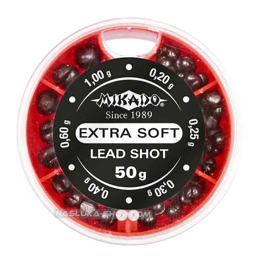 Тежести за плувка в кутия Mikado Extra Soft Lead Shot, 50 г
