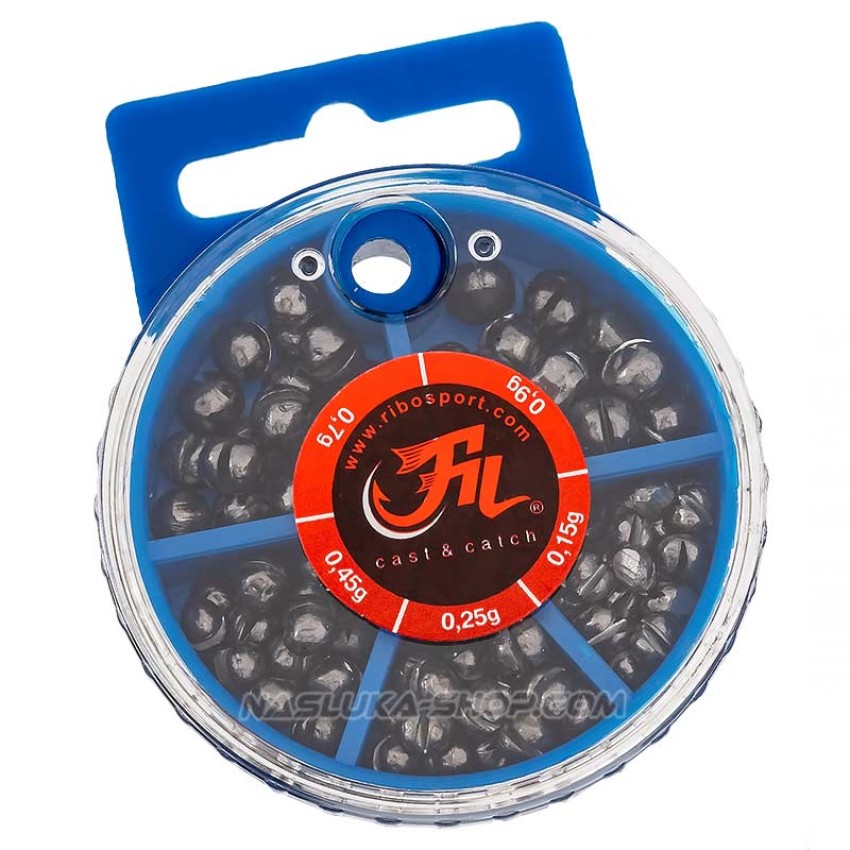 Тежестите Fil Fishing - 1942 се предлагат в кутия със самостоятелни отделения за различните грамажи - 0.15, 0.25, 0.45, 0.70 и 0.90 грама.