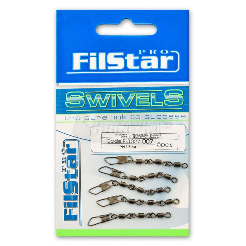 Тройни вирбели от неръждаема стомана с голяма издръжливост и карабина с много надеждно закопчаване, които напълно предотвратяват усукването на риболовната линия. Завъртат се и при най-малката необходимост, елиминирайки оплитането на влакното. Подходящи предимно за спининг риболов.
