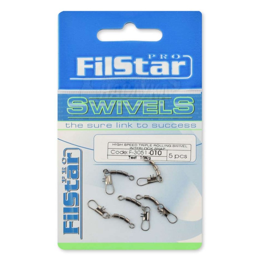 Тройни вирбели от неръждаема стомана с голяма издръжливост и карабина с много надеждно закопчаване, които напълно предотвратяват усукването на риболовната линия. Завъртат се и при най-малката необходимост, елиминирайки оплитането на влакното. Подходящи предимно за спининг риболов.