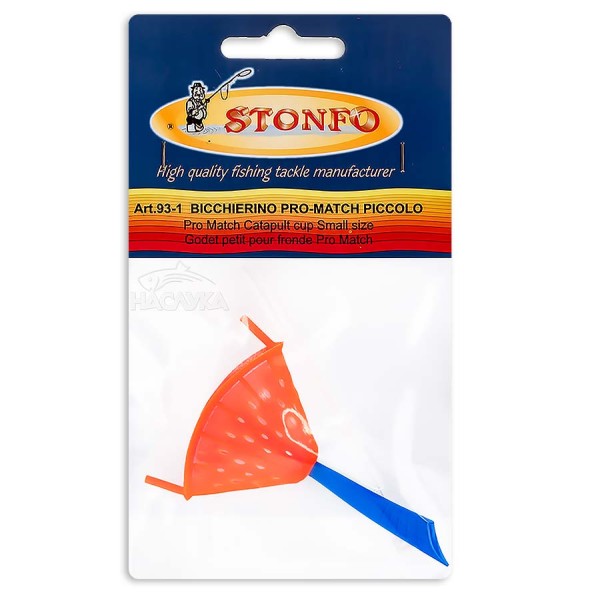 Резервна чашка за прашка Stonfo Pro Match. Чашката е размер small. Предназначена за захранване на малка дистанция с по-лека и деликатна стръв, като бял червей, жито, царевица и др. Изработена от качествени материали, пластична, здрава и лека.
