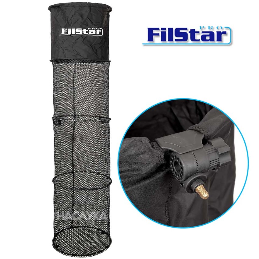 Качествен живарник от FilStar, с чудесно съотношение цена/качество. В горната си част е плътен, за да може по-лесно да се пуска рибата без да се закача за перките и има ъгъл с резба за различен наклон.