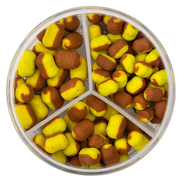 Силният визуален контраст прави стръвта видима дори на тинесто дъно. Комбинацията от естествен рибен профил и аромат на царевица се доказва като изключително ефективна при предпазливи риби. Подходящи за улов на шаран, каракуда, платика и други видове мирна риба. 🐟 Балансираната плаваемост осигурява естествена презентация на стръвта.