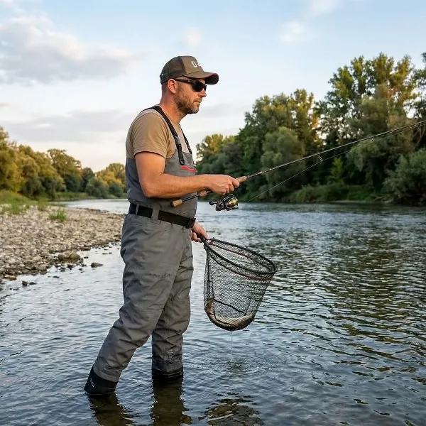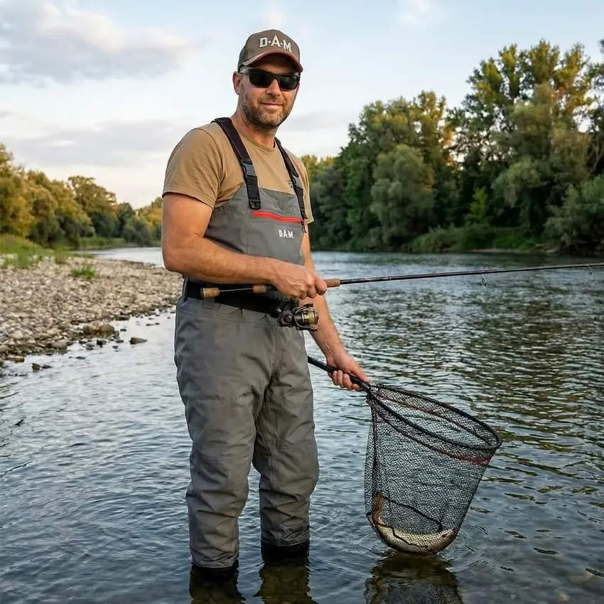 Подходящ за спининг риболов на пъстърва, щука, шаранджийски сесии и газене в планински реки. 🐟 Идеален за риболовци, които търсят комфорт и защита при продължително носене.