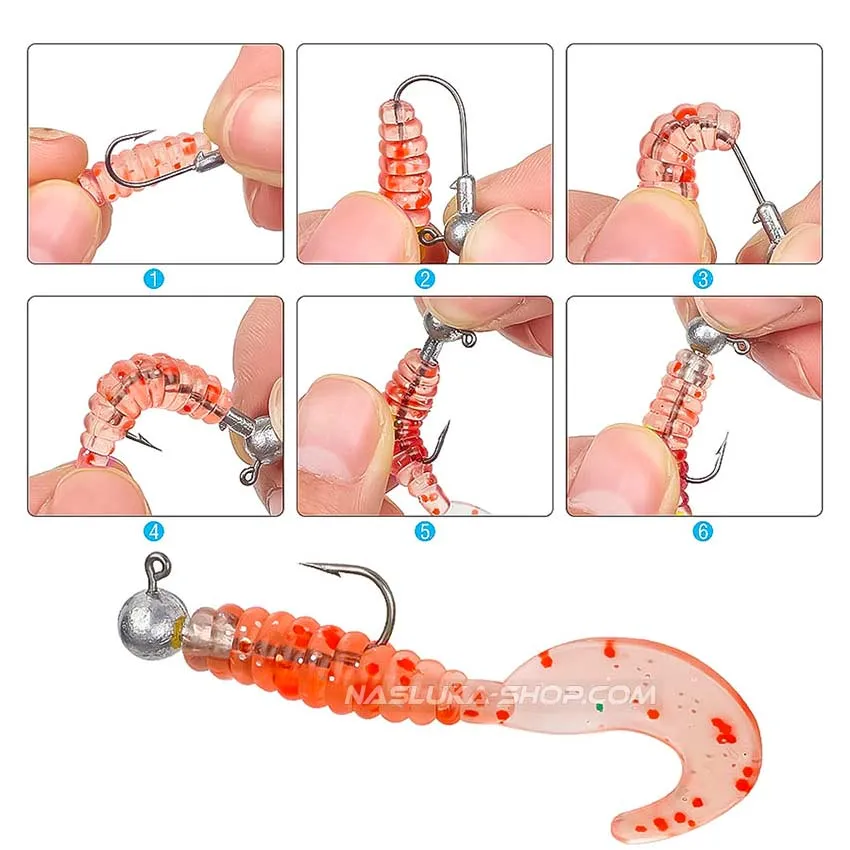 Широката гама от размери на куките и тегла на джиг главите позволява избор на перфектния вариант според условията на риболов.