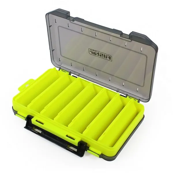 Двустранната кутия за примамки FilStar е практично решение за организирано съхранение на твърди примамки. С общо 12 отделения - по 6 от всяка страна, кутията осигурява отлична систематизация на различни модели воблери, клатушки, пилкери, джигове и др. 🎣