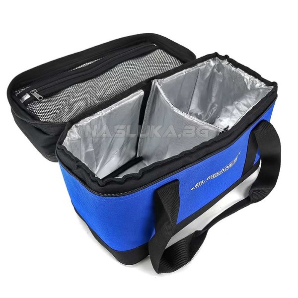 Долната най-голяма част на чантата е термоизолирана и има велкро преграда, която разделя пространството на две части.