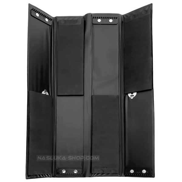 Класьор за вързани куки с твърди стени, разделен на 4 отделения. Може да се поставят поводи с различна дължина.